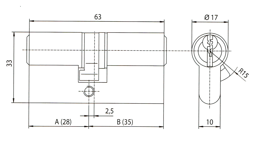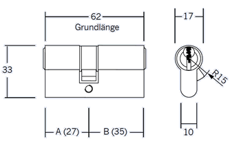 ![]() Knaufzylinder AZ04Beachte Länge B = Knaufseite Bestellbeispiel für Außenseite 50 mm und Knaufseite 30 mm (AZ04 L=50/30) |
